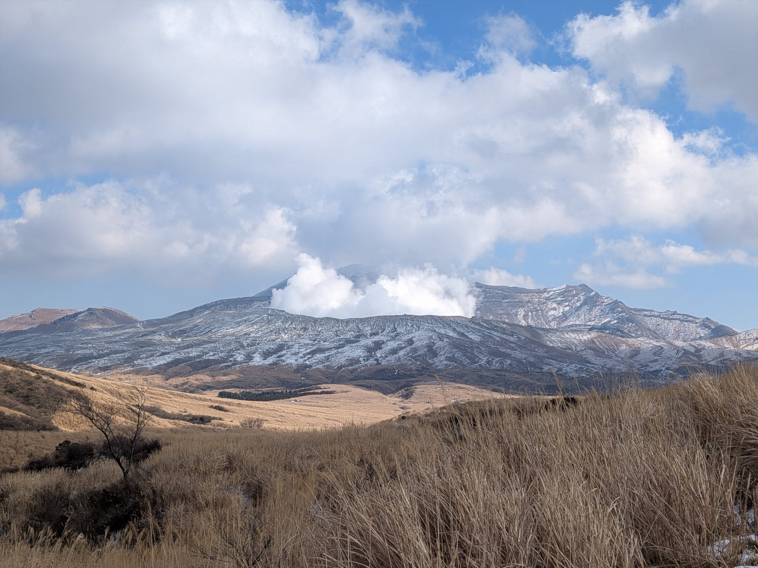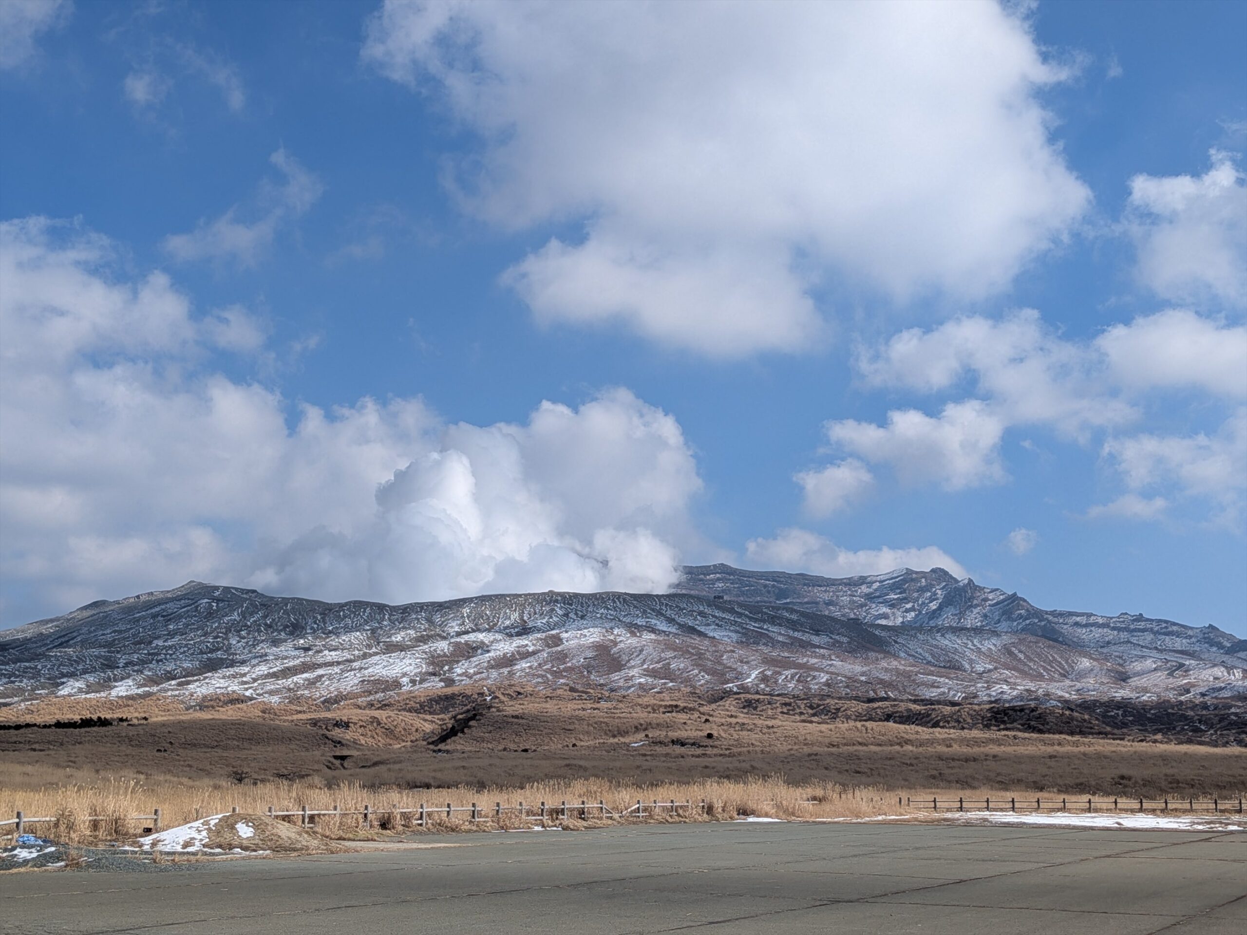 まだまだ雪が残ってる阿蘇山
