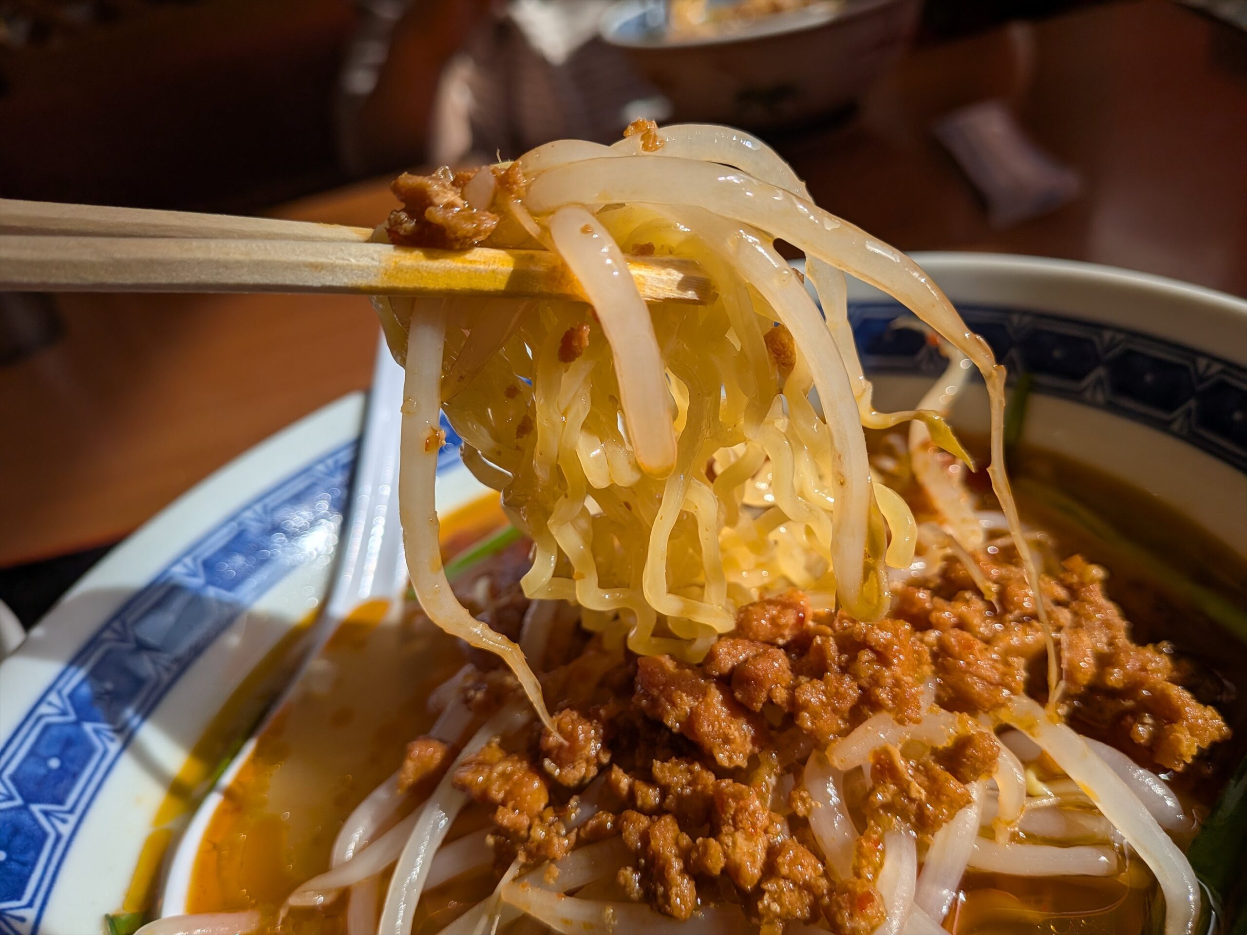 上に辛く味付けされたひき肉が乗ってるのが特徴。
