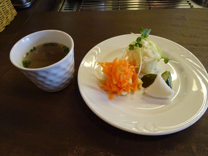 サラダ、ピクルス的なものも。